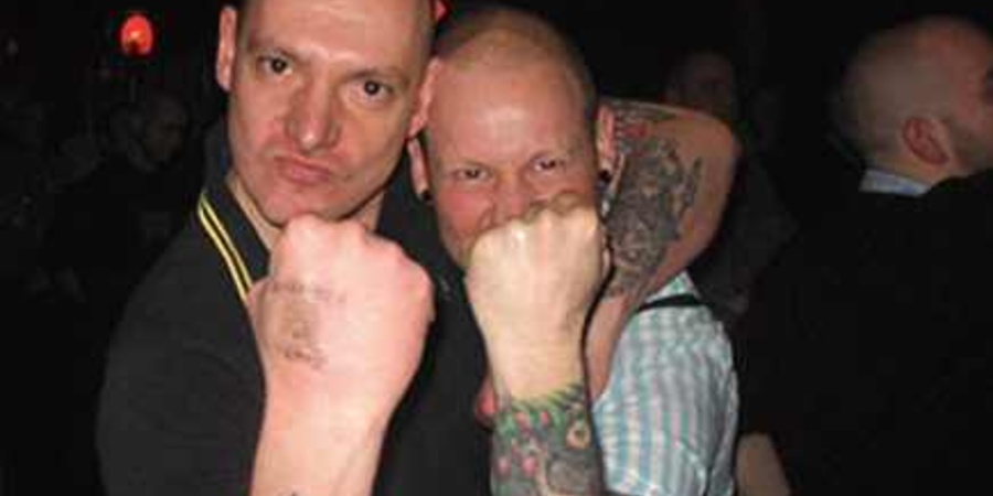Der 12. April 2008 war eine Art Rückweg, wenn auch nur für wenige Stunden. Die neonazistisch durchsetzten Bootboys Hildesheim (vgl. »Oi ain't Red?«, AIB 91) veranstalteten ein Konzert mit der RechtsRock-Band Indecent Exposure und Bilder des Events fanden sich kurz darauf in einer Bilderserie auf einer privaten Homepage. Auf einem Foto posiert Walkenhorst Arm in Arm mit Jens Brandt, dem Frontmann der dienstältesten deutschen Neonaziband Endstufe, beide recken die geballten Fäuste in die Kamera. Damit konfrontiert, erklärte Walkenhorst, das Konzert sei »wie eine Zeitreise in die eigene Jugend« gewesen, aus der er Jens Brandt kenne. »Als dann sogar noch überraschend die 4-Skins einige Songs zum Besten gaben, gab es kein Halten mehr.«5 In dieser gelösten Atmosphäre sei der »Schnappschuss eben« entstanden. Man gab sich zerknirscht und trotzig: »Nichtsdestotrotz halten wir es mit der Band, die bei der Entstehung des Fotos im Hintergrund spielte: »We won’t say sorry to anyone!«.6 Das »Rote Hetzpamphlet« dokumentierte im Oktober 2008 auf 79 Seiten Fakten und Fotos über Stomper 98, um deren bevorstehende 10-Jahres-Party am 15. November 2008 im Leipziger Kulturzentrum Conne Island zu verhindern. Doch der Haupt-Booker des Conne Island gab eine Ehrenerklärung für die Band ab und das Konzert konnte stattfinden. Stomper 98 und die Templars coverten an diesem Abend Lieder der »alten« Böhsen Onkelz.7 Neben Walkenhorst auf der Bühne stand Michaela J. von den Bootboys Hildesheim.