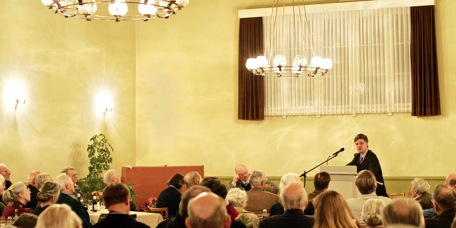 Eine Saalveranstaltung der "Staats- und Wirtschaftspolitischen Gesellschaft" (SWG) im März 2005 in Kiel.