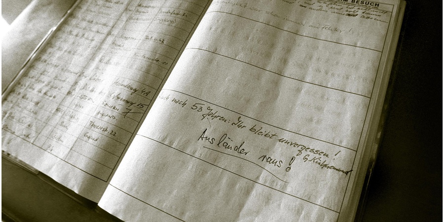 Eintrag im Gästebuch auf dem deutscher Soldatenfriedhof auf Kreta: "Nach 53 Jahren. Ihr bleibt unvergessen" und "Ausländer raus!". Auf dem "Deutschen Soldatenfriedhof" nahe der Ortschaft Maleme sind die toten deutschen Soldaten beerdigt, die bei der Invasion der Mittelmeerinsel im Mai 1941 ums Leben kamen.