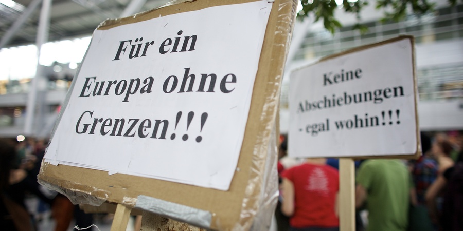 Antirassistischer Protest im Düsseldorfer Flughafen.