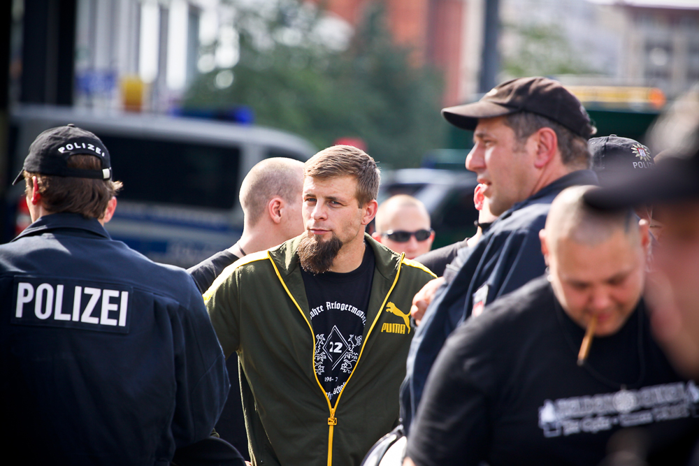 Manfred Börm, damaliger NPD-Ordnerdienst-Chef beim NPD-Bundesparteitag 2009 in Berlin.