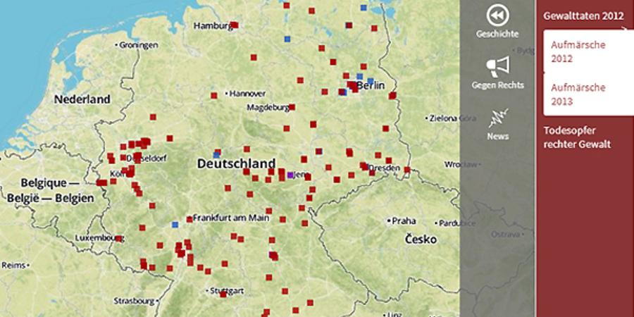 An Wissen über Neonazis, ihre Strukturen, Aktivitäten und Gewalttaten mangelt es vielerorts nicht. Doch wahr- und vor allem auch ernst genommen werden die durch Antifa-Gruppen, Initiativen und Engagierte vor Ort gesammelten Erkenntnisse oft nur widerwillig oder gar nicht. Durch den Zugang über eine Karte findet das lokal vorhandene Wissen Verbreitung und zugleich kann das Engagement bekannter gemacht werden.