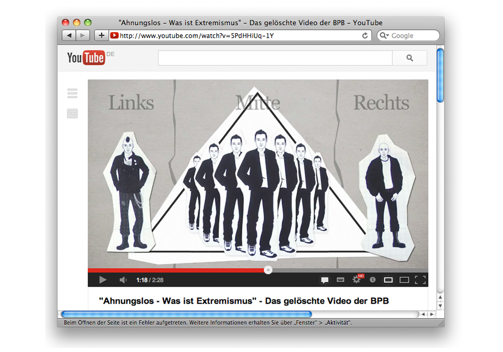 Die Idee einer gegenseitigen Bedingtheit von »Extremen« findet sich ebenso im Kontext NSU. Die bpb ist mit einem Video in die Kritik geraten, das die rassistischen Morde des NSU als Reaktion auf das Anzünden von Autos durch Linke verstanden wissen will. Auch wenn dieses Video wieder aus dem Umlauf genommen wurde, behält die Gleichsetzung von Links und Rechts weiter ihre Wirkmächtigkeit. So schrieb die Tageszeitung Märkische Allgemeine: »Für RAF und NSU zählte nur die Tat. Der größte Unterschied ist in der Stoßrichtung des Terrors zu sehen. Hier die Linksextremisten, die das kapitalistische »Schweinesystem« bekämpften. Dort die Rechtsextremisten, die Migranten ermordeten. Die Gemeinsamkeit: NSU und RAF predigten die Aktion. »Taten statt warten« und »Taten statt Worte« lauteten die Mottos.«8