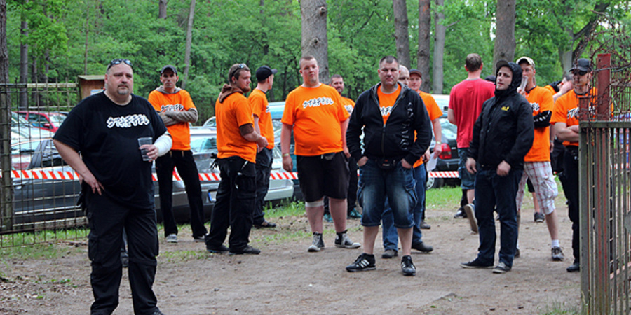 Organisiert wurde das Konzert von der Berliner Neonaziaktivistin Gesine Hennrich, ehemals »Frontbann 24«. Weitere »Frontbann 24«-Aktivisten sowie Neonazis des »Nationalen Widerstand Berlin« fungierten als OrdnerInnen – mit orangefarbigen T-Shirts und der Aufschrift »Staffel«. Das Konzert werteten Veranstalterin Hennrich und Gäste vom FSN.tv, einem neonazistischen Internetradio, als Erfolg, obwohl die anreisenden TeilnehmerInnen weite Umwege und starke Verzögerungen in Kauf nehmen mussten. Knapp 1.000 Antifaschist_innen hatten die Anfahrtswege zum Konzertgelände durch Sitzblockaden versperrt. Für die kommenden Monate sind bereits mehrere Neonaziveranstaltungen auf dem Gelände angemeldet, neben dem »Preußentag« der NPD im Oktober ist für den 17. August, dem Todestag des Hitler-Stellvertreters Rudolf Heß, ein Konzert mit »Kategorie C« angekündigt.