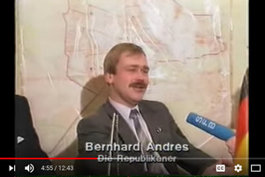 20. August 1988: Erster Landesparteitag der „Republikaner“ (REPs) im Internationalen Congress Centrum (ICC). Demonstration und Gegenkundgebung von AntifaschistInnen (siehe Bericht im letzten Antifaschistischen Infoblatt). 30. August 1988: Die CDU-Jugend „Junge Union“ (JU) Berlin-Tempelhof erhebt ein Ausschlußverfahren gegen Heiko L., der sich (wie im letzten Antifaschistischen Infoblatt berichtet) bei der Westberliner Grundungsversammlung der „DVU - Liste D“ als knüppelschwingender Ordner aufspielte. 31. August 1988: Der NPD, die sich an den Abgeordnetenhauswahlen beteiligen will, wird von der